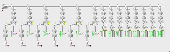 Q02CPU控制17軸變頻器,Q173CPU控制生產(chǎn)加工30軸伺服電機,Q172CPU控制包裝設(shè)備5軸伺服電機.