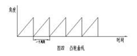 6個切刀輥設(shè)計為往復(fù)式自由凸輪模式.一個周期為此360°與切刀輥一轉(zhuǎn)相對應(yīng).其凸輪曲線如圖4所示 。