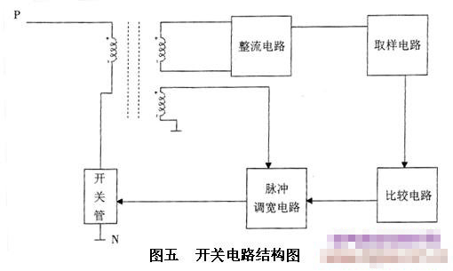 開(kāi)關(guān)電源電路向操作面板、主控板、驅(qū)動(dòng)電路及風(fēng)機(jī)等電路提供低壓電源。圖2.5富士G11型開(kāi)關(guān)電源電路組成的結(jié)構(gòu)圖。