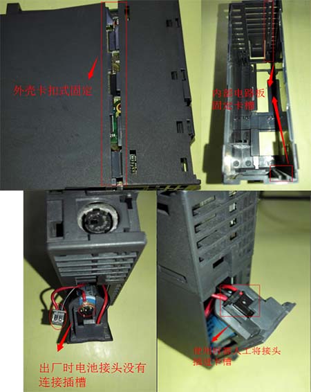 三菱Q系列CPU內(nèi)部都會(huì)自帶電池,出廠時(shí)處于未連接狀態(tài)(圖二),使用時(shí)只需人工將小接頭插上即可。原因?yàn)榱耸欠乐闺姵胤烹娤暮桶l(fā)生電池漏液,損壞CPU。故電池沒(méi)有束縛,搖動(dòng)時(shí)產(chǎn)生較大響聲