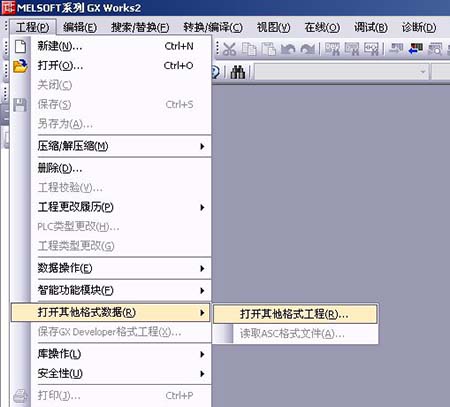 第 1 步:在 GX Works2 中,點工程、打開其他格式數(shù)據(jù)、打開其他格式工程;