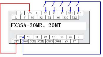 FX3SA 沒有 COM 端子,和 FX1S 在輸入接線處有點區(qū)別: